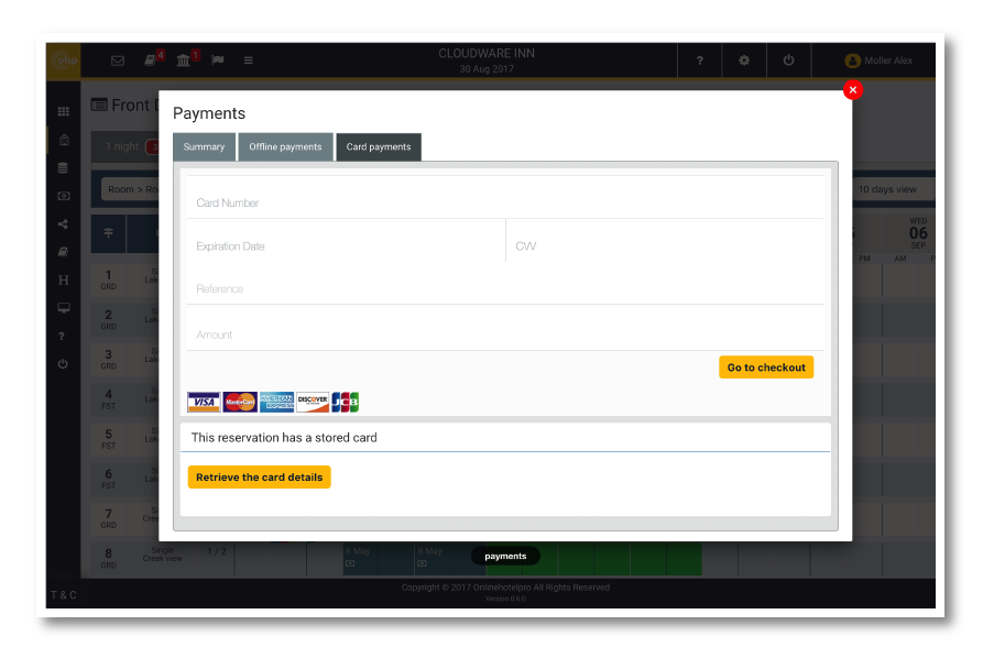 Payments due from bookings made by your booking engine, frontdesk or received through the channel manager can be securely processed through our PCI-DSS compliant system